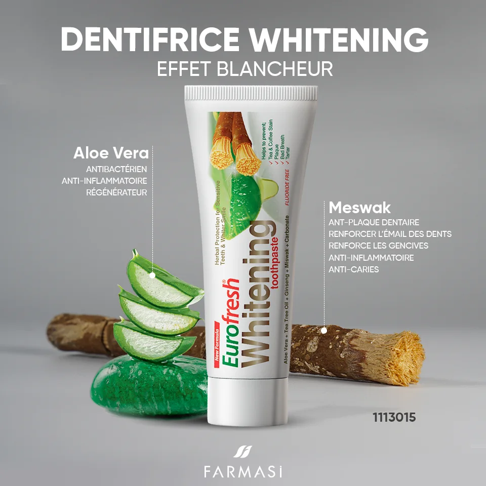 استعد ثقتك بابتسامة ناصعة البياض وصحية مع معجون أسنان Eurofresh Whitening الشهير. نحن نوفر لك النسخة الأصلية المستوردة مباشرة من شركة فارماسي (Farmasi) في تركيا، لضمان أعلى معايير الجودة والفعالية.
