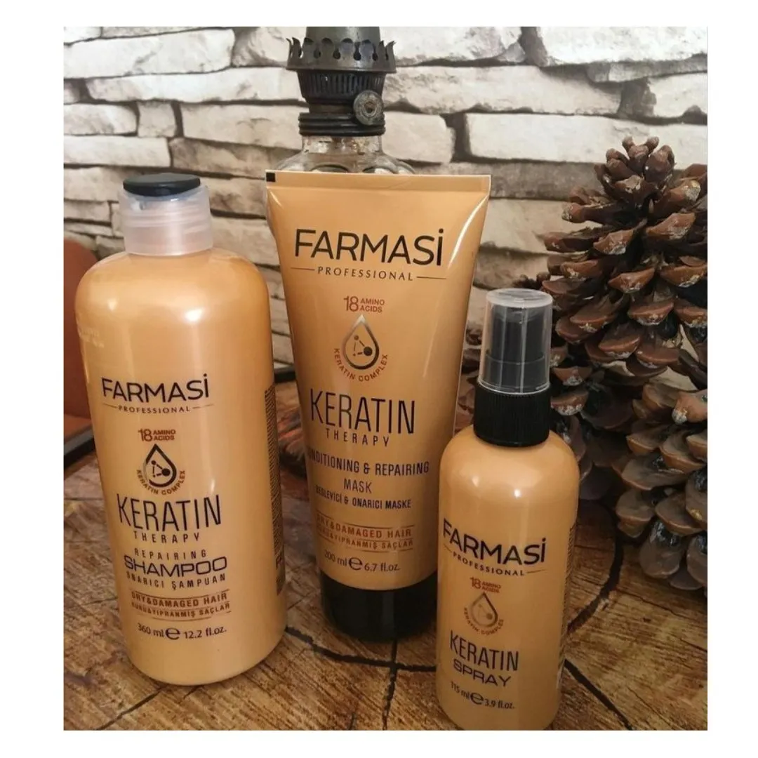 هل يعاني شعرك من التلف، التقصف، أو فقدان الحيوية بسبب الصبغات والحرارة؟ مجموعة Keratin Therapy من Farmasi Professional هي الحل المتكامل لإعادة بناء شعرك من الداخل بتركيبة ذكية تحاكي بنية الشعر الطبيعية.