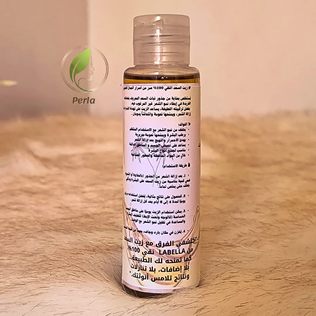 هل تبحثين عن وسيلة طبيعية وفعالة للحفاظ على نعومة بشرتك لفترة أطول؟ في بيرلا ستور، نقدم لكِ زيت السعد الأصلي، المستخلص من أجود جذور نبات السعد المعروف بقدرته العجيبة على إضعاف بصيلات الشعر وتقليل سرعة نموه تدريجياً حتى يختفي.