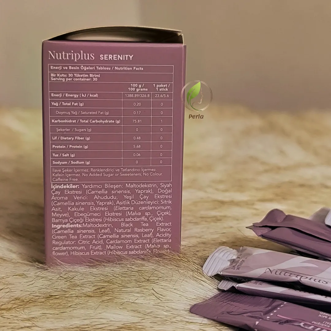مسحوق "سيرينيتي" من نوتريبلاس هو مزيج من المستخلصات العشبية الطبيعية، صُمم خصيصاً ليُضاف إلى مشروباتك المفضلة، ليمنحها نكهة التوت الأحمر (Raspberry) الساحرة مع فوائد تدعم توازن يومك.