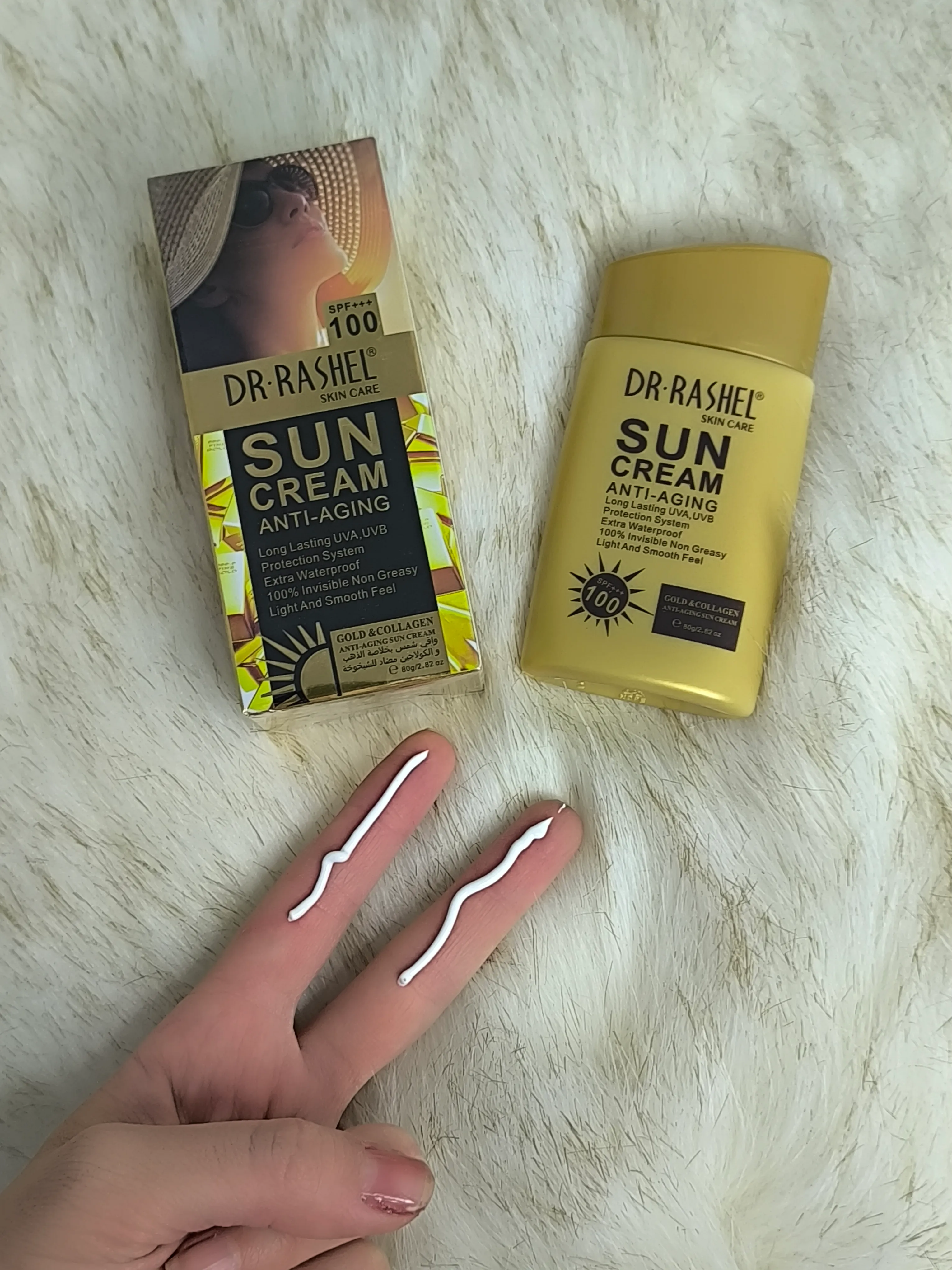 واقي الشمس من "دكتور راشيل" هو درع حماية متكامل لبشرتكِ بتركيبة "Multi-effect". يحتوي على الذهب والكولاجين اللذين يعملان على شد البشرة وتأخير ظهور علامات الشيخوخة، بينما يوفر معامل حماية (SPF 100) دفاعاً قوياً ضد أشعة UVA وUVB الضارة.