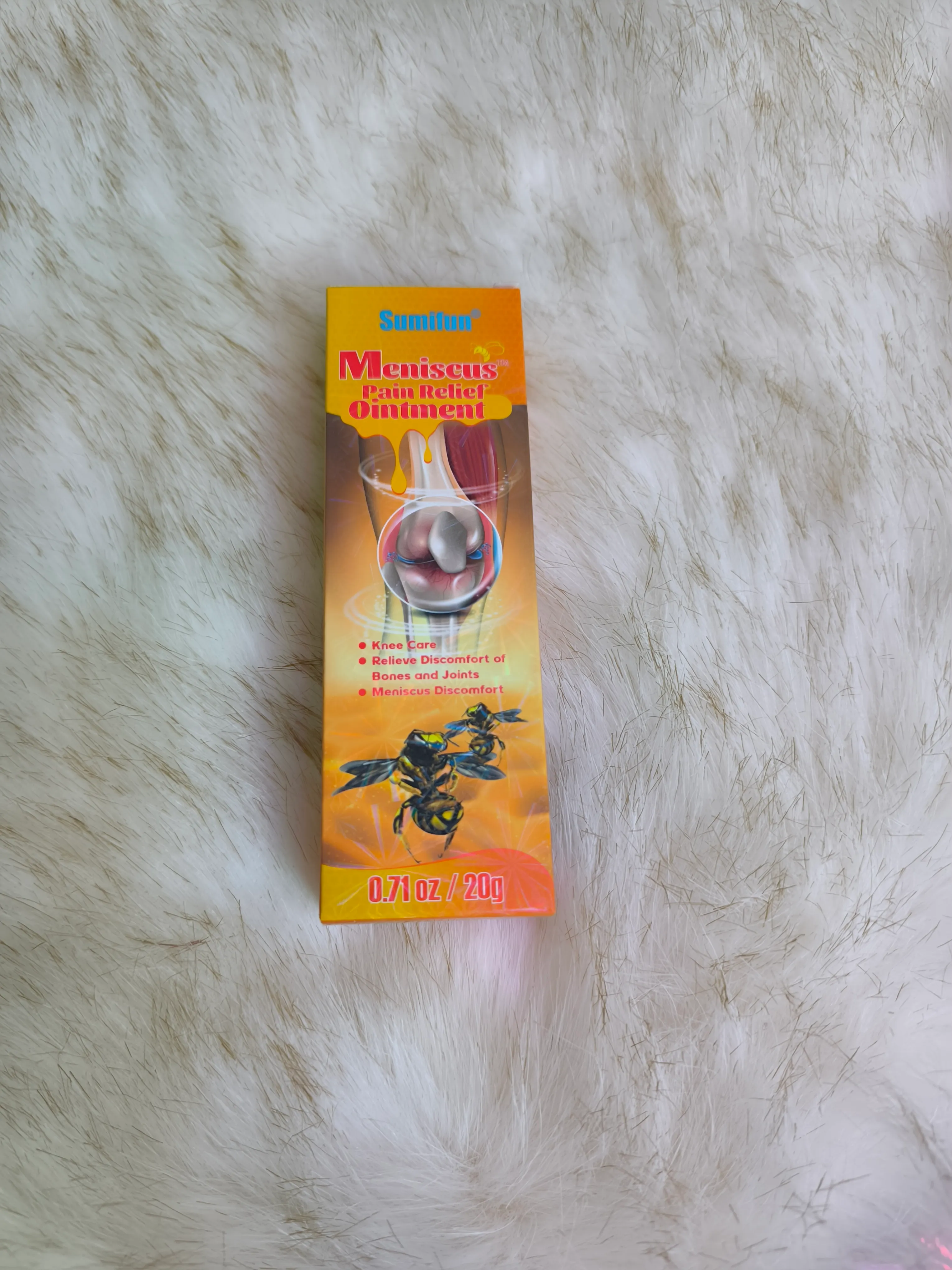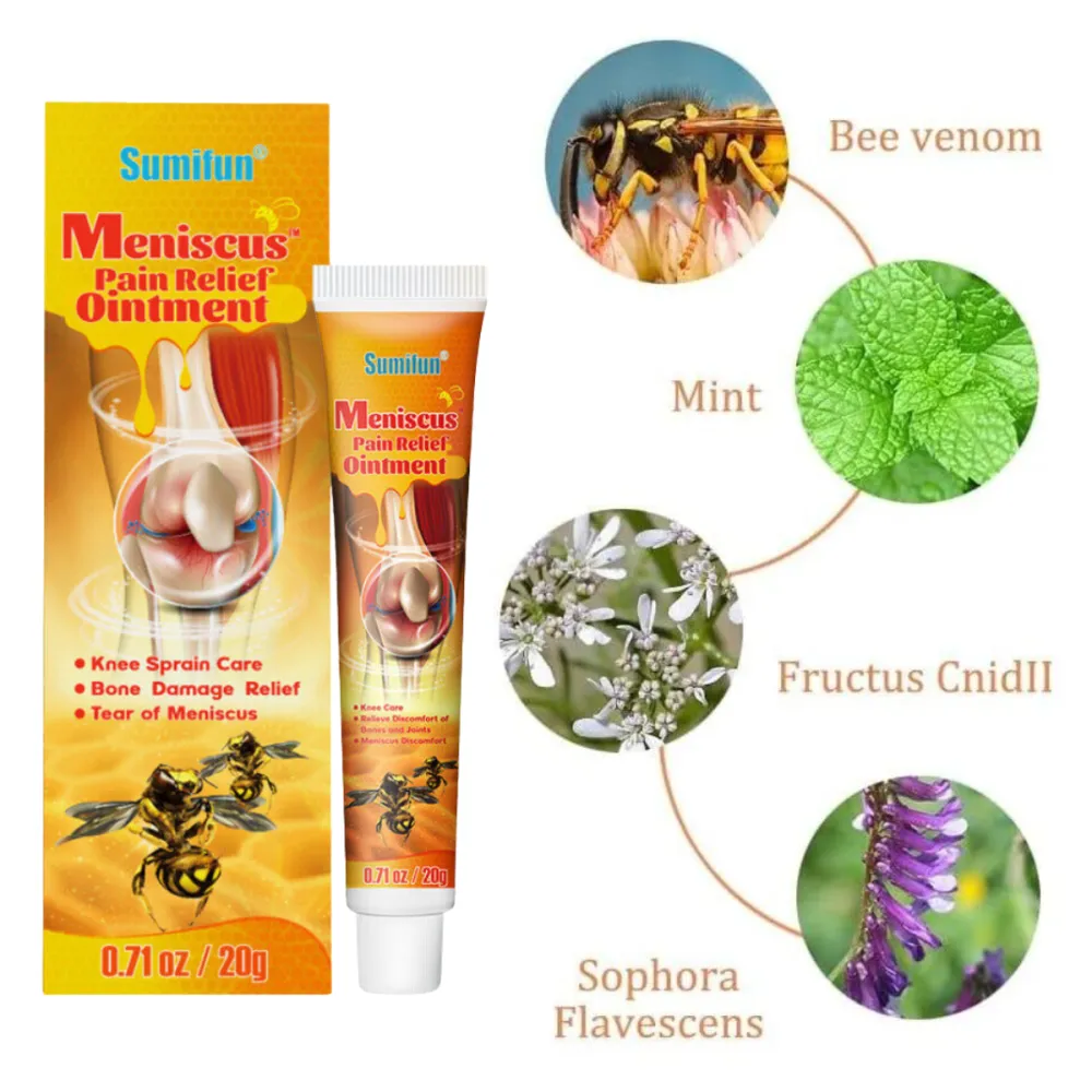 كريم "Sumifun" المطور بخلاصة سم النحل الطبيعية، الحل الفعال والآمن لتخفيف آلام الركبة، إصابات الغضروف (Meniscus)، والتواءات المفاصل. تركيبته الغنية تخترق الجلد لتعمل على تهدئة الالتهاب وتقليل التورم بفعالية وسرعة.